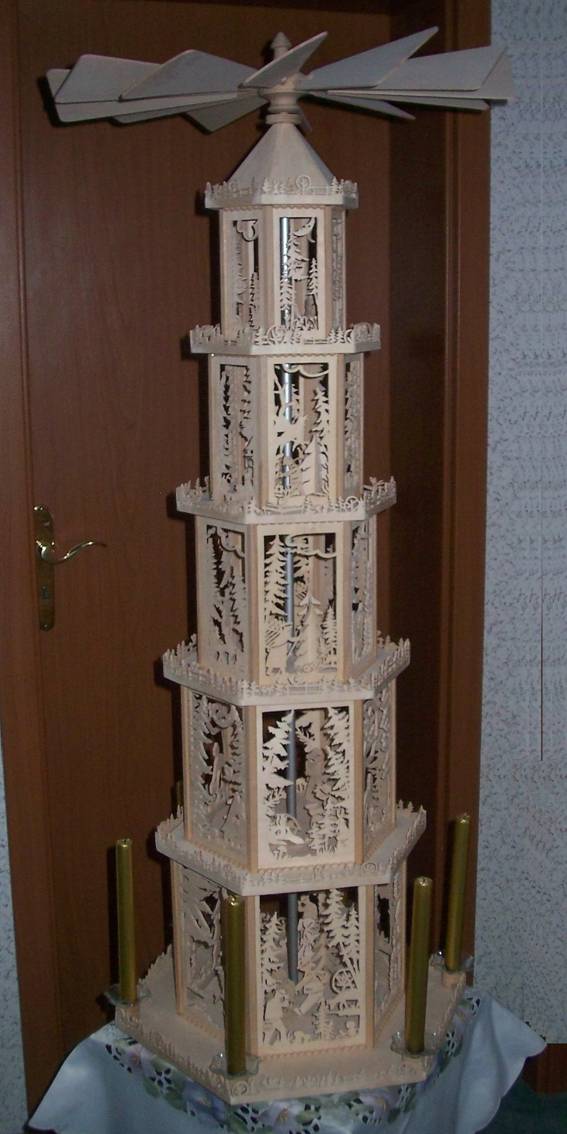 You will find examples of pyramids, candle arches and much more on our site, sorted by category. By clicking on "Show more" you can display more pictures for each category! We thank all our customers who let us have the pictures and gave us permission to publish these pictures here! The pictures should serve as a suggestion of how beautiful the exhibits can be.